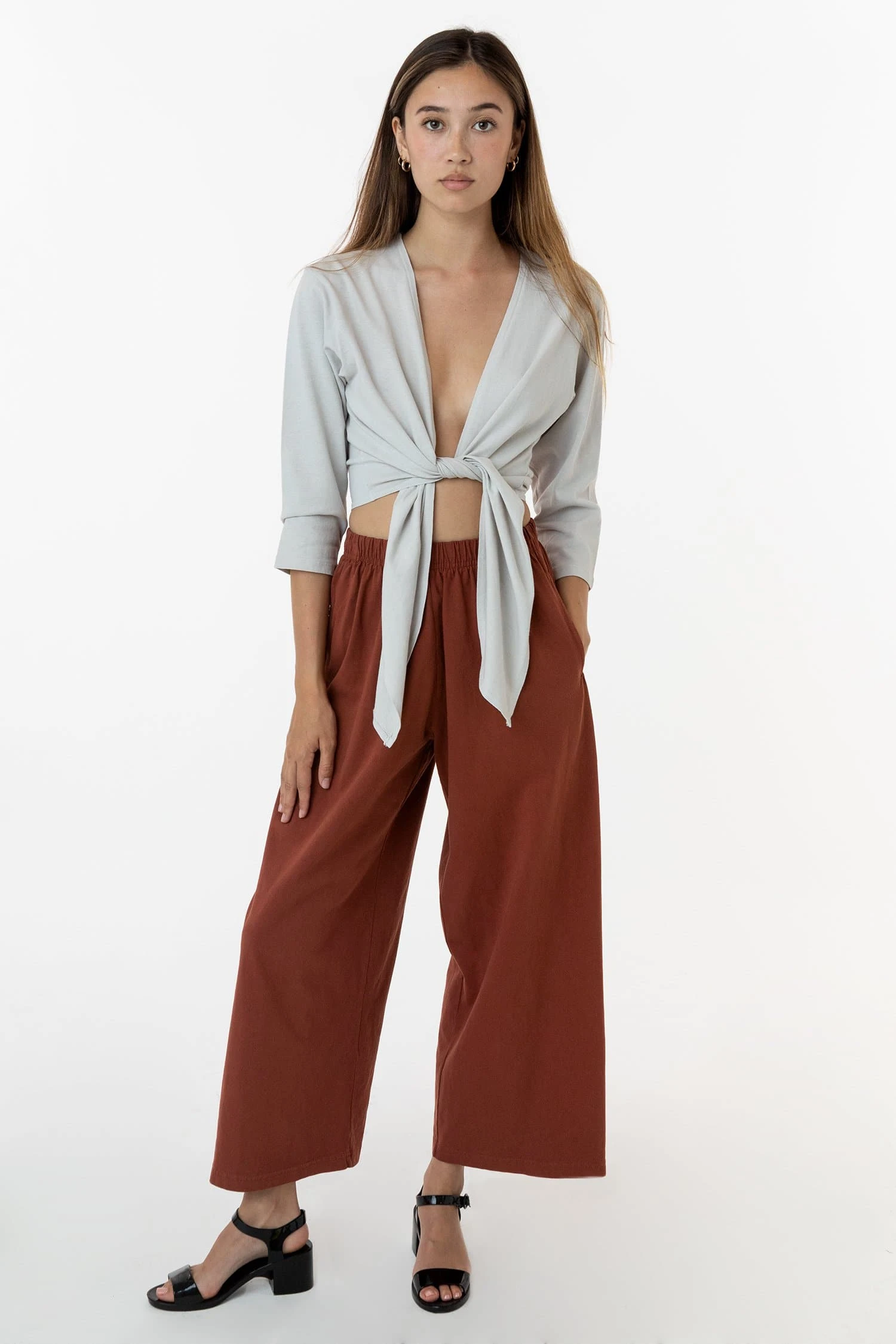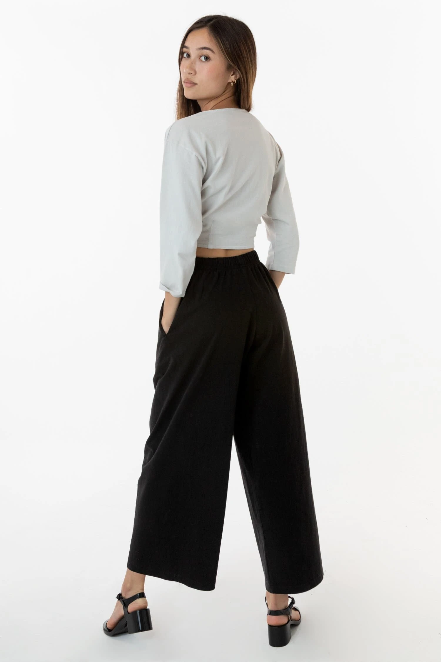 This relaxed lounge pant is made of our 7.5 oz 14 singles jersey and features a generously chic fit and comfortable elastic waistband. Pair these pants with a baby tee for indoor lounging and dress them up with a fitted turtleneck or your favorite blouse. Also features 2 deep side pockets. Made of 100% cotton, garment dyed and shrink-free. Made in South Central, Los Angeles by workers earning fair wages.