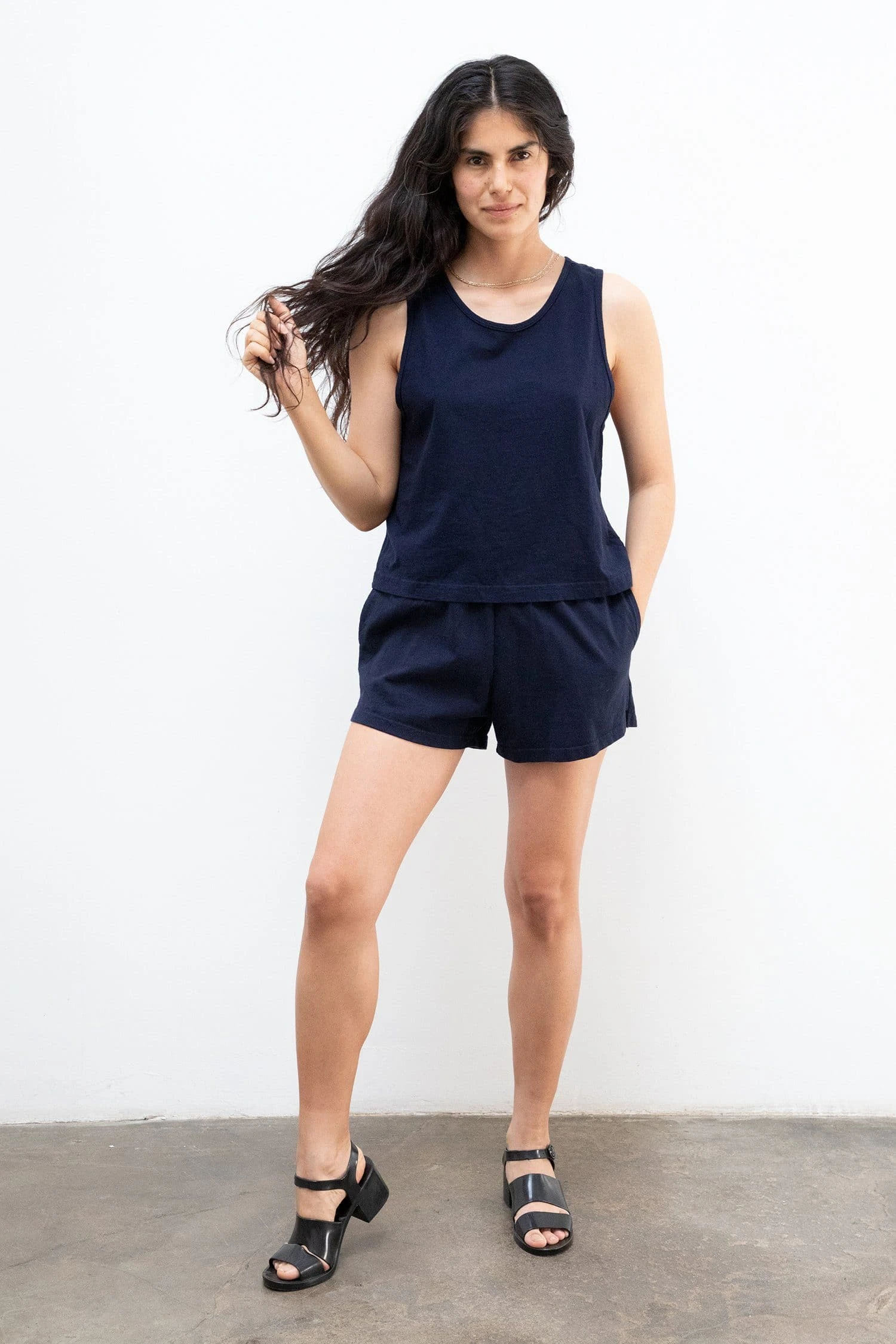 The Mid-Tank is the ideal silhouette for those who haven warmed up to the idea of cropped garments. Not too oversized and not too fitted, this tank is a wardrobe staple that you can wear for any occasion.