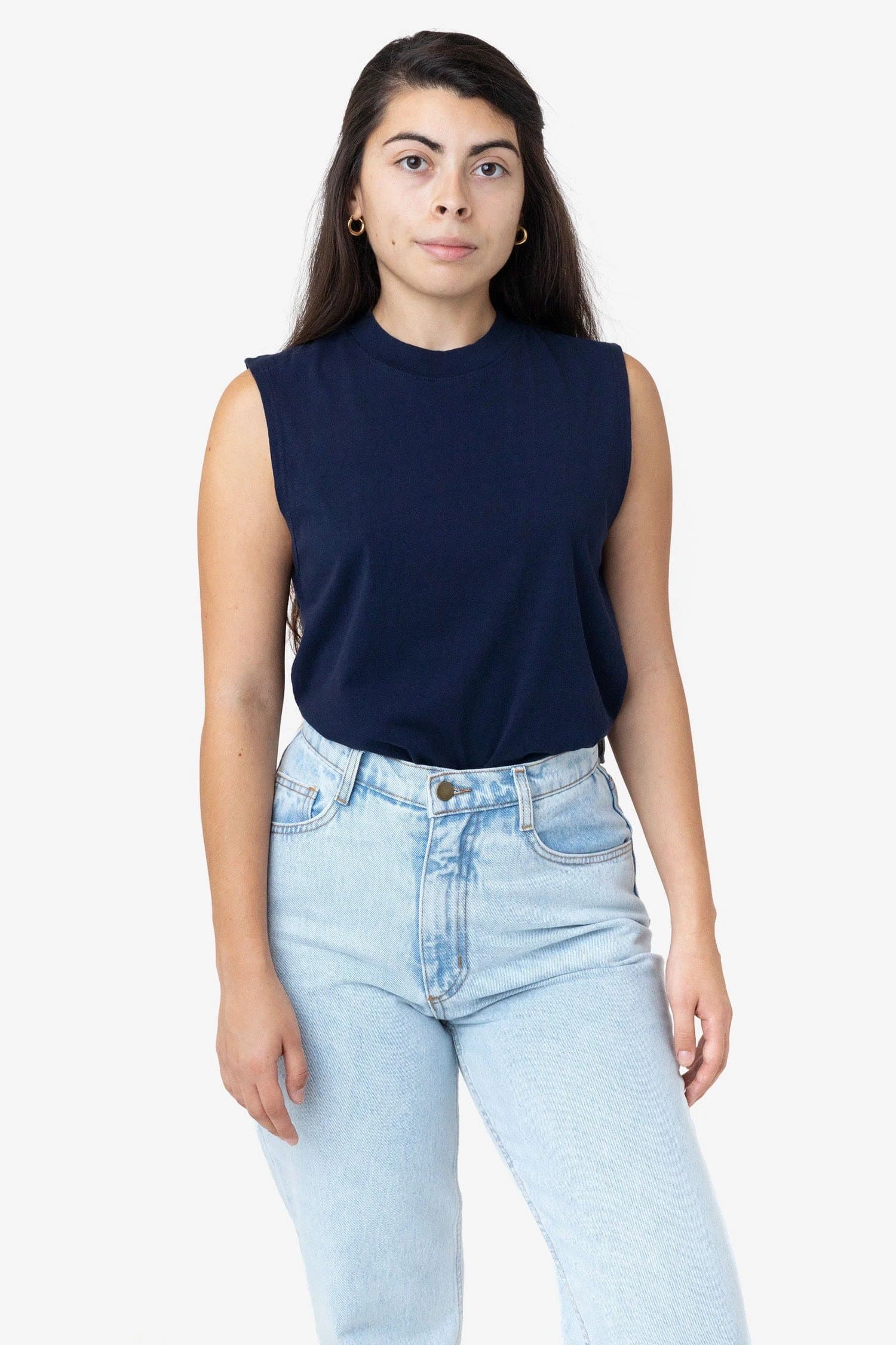 Our Women’s Muscle Tank is made of a lightweight and airy 28/1 open end yarn like our 2802GD Boyfriend Tee. This style has a generous fit with roomy armholes. The high-crew neckline of this top makes it great for layering and the mid-length can be tucked in or worn out.