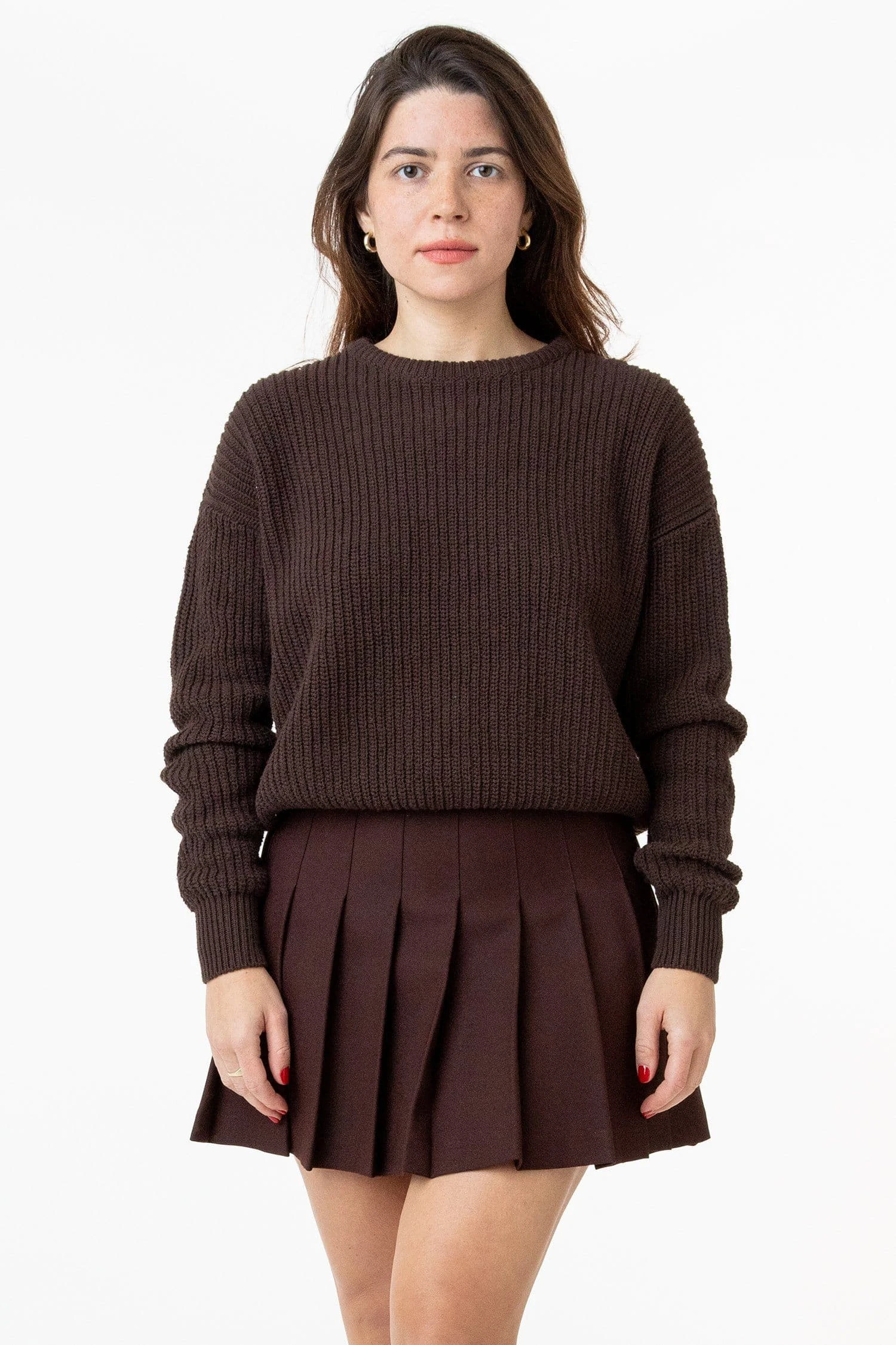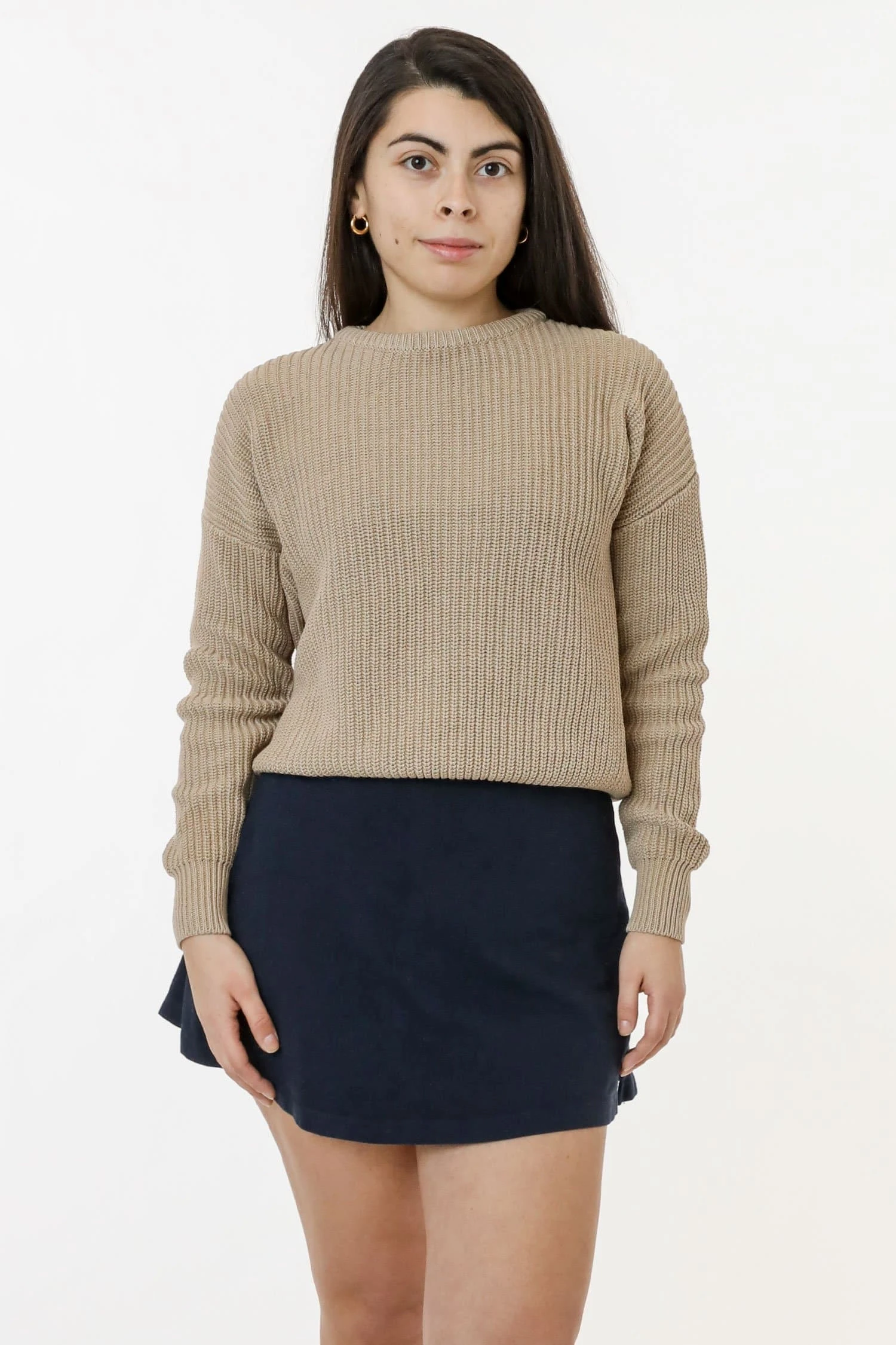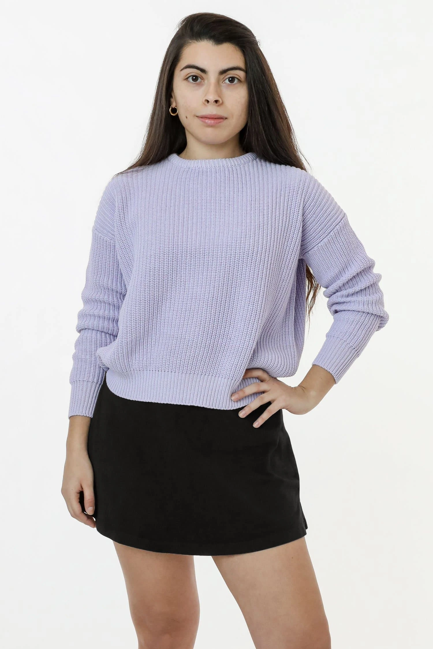 The iconic Fisherman Pullover is back with a few updates. We used open end yarns and garment dyed these sweaters for a naturally broken-in feel and vibrant color finish. Pair this sweater with our RGB300 Tennis Skirt and Opaque Tights for a sophisticated look or layer it with one of our turtlenecks for extra color and warmth. Lightweight enough for Spring and versatile for colder weather. This knit will loosen some as you wear to accommodate different lengths and widths, but will return to the original size after wash. Shrink-free due to garment dyeing.