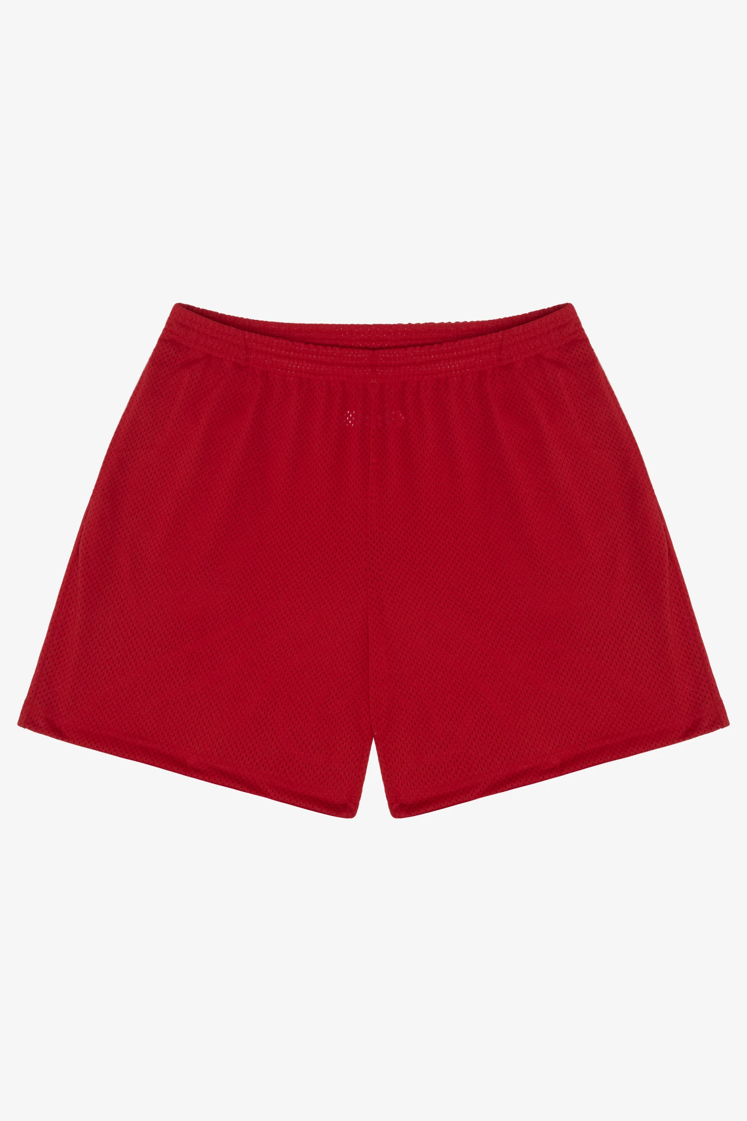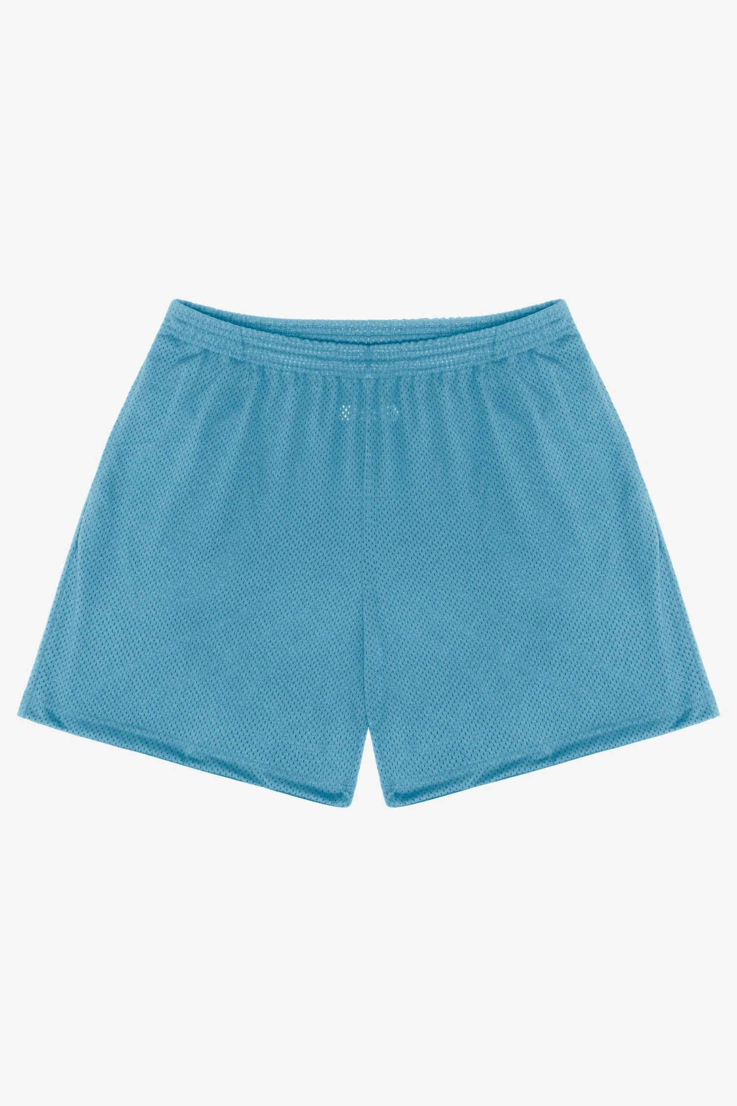 These mid-length basketball-style shorts are made of a durable polyester mesh with a subtle translucent look. Made with a generous width for a breezy fit and finished with 2 side pockets and an adjustable drawcord waist.