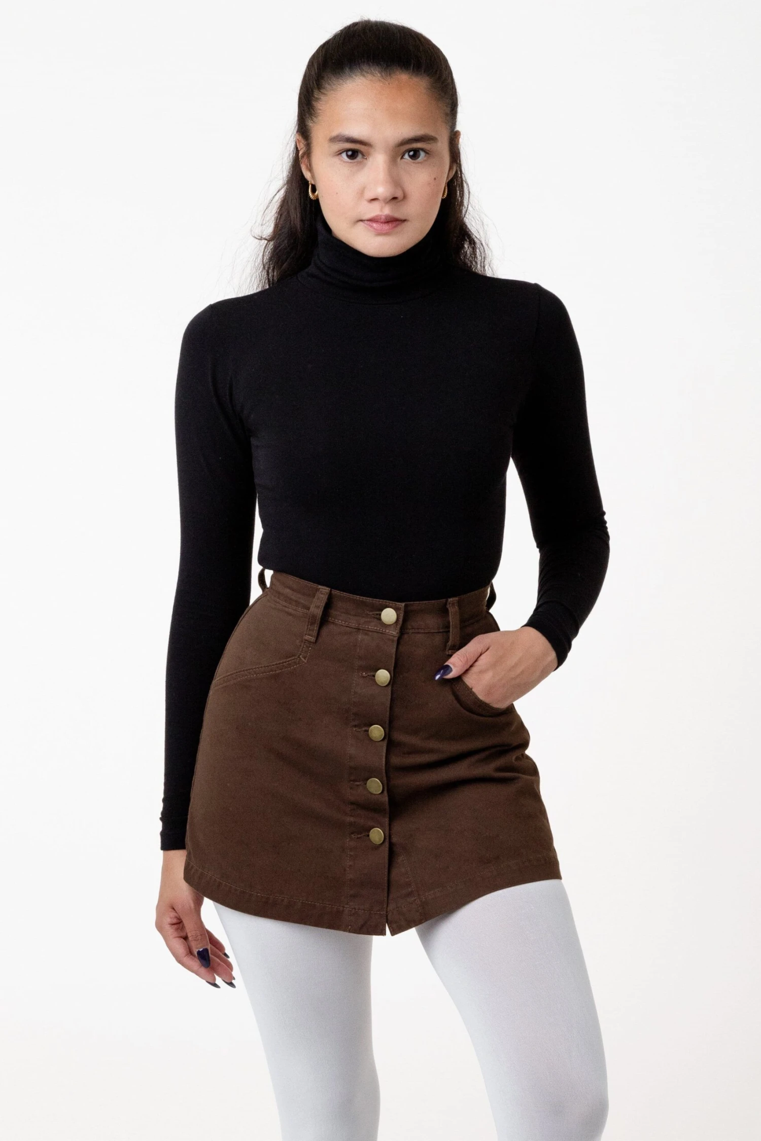 The Cotton Twill Button Front Skort is playful, yet sophisticated and combines all of our favorite things, with the feminine silhouette of a skirt with shorts underneath to keep you secure and comfortable while you get around. This skort is made of our 8 oz cotton twill with structure and wearability. This style features a brass-finish zip and multi-button closure with belt loops and side pockets. Pair effortlessly with a cropped sweater and tights for cooler days and dress it up with a turtleneck.