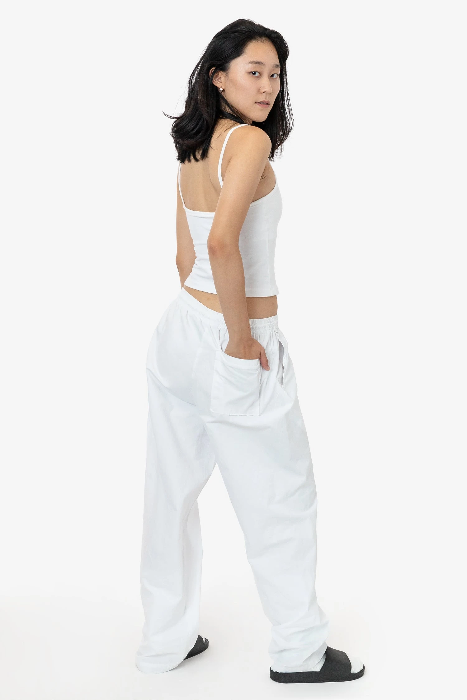 These 100% Cotton Poplin pants feature an extra wide, baggy fit. They feature 2 side pockets, 1 back pocket and an elastic waistband with drawcord for an adjustable fit. This crisp cotton poplin has a lightweight and fresh feeling against the skin and can be dressed up or down. These pants have also been garment washed and are shrink-free.