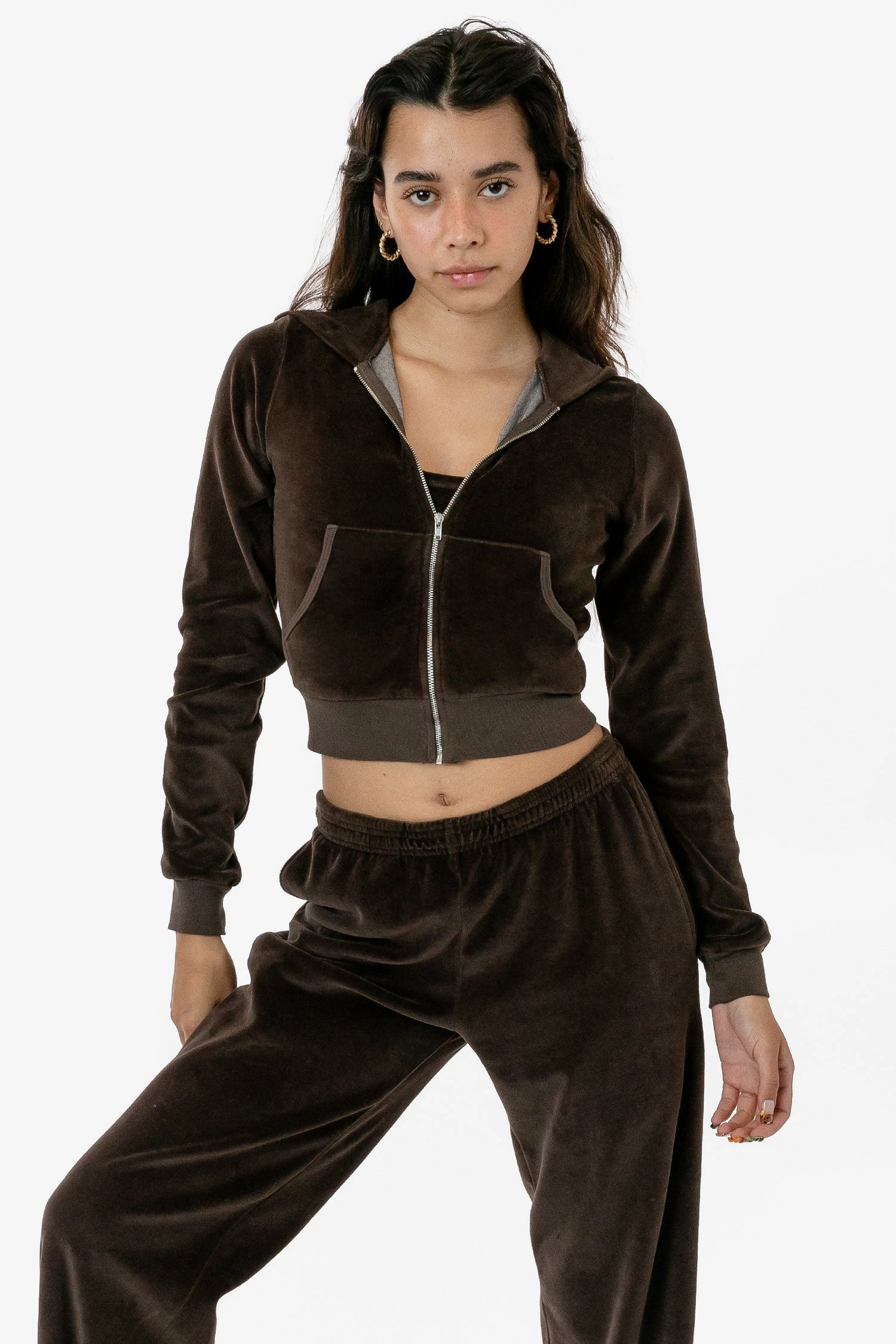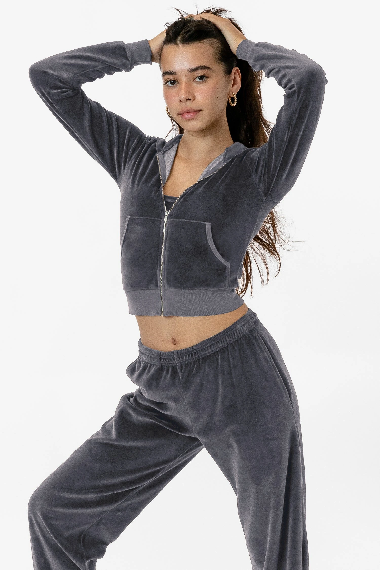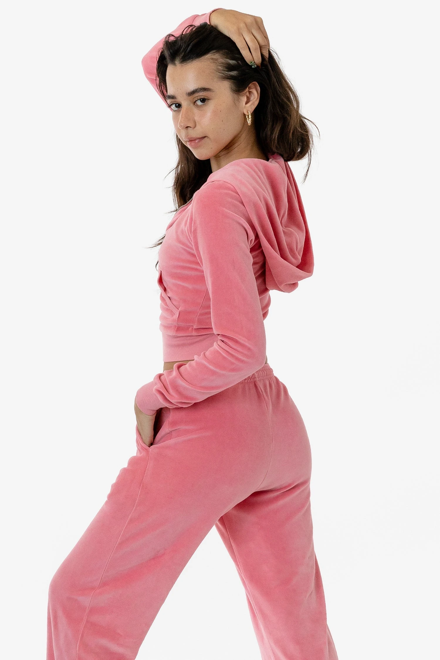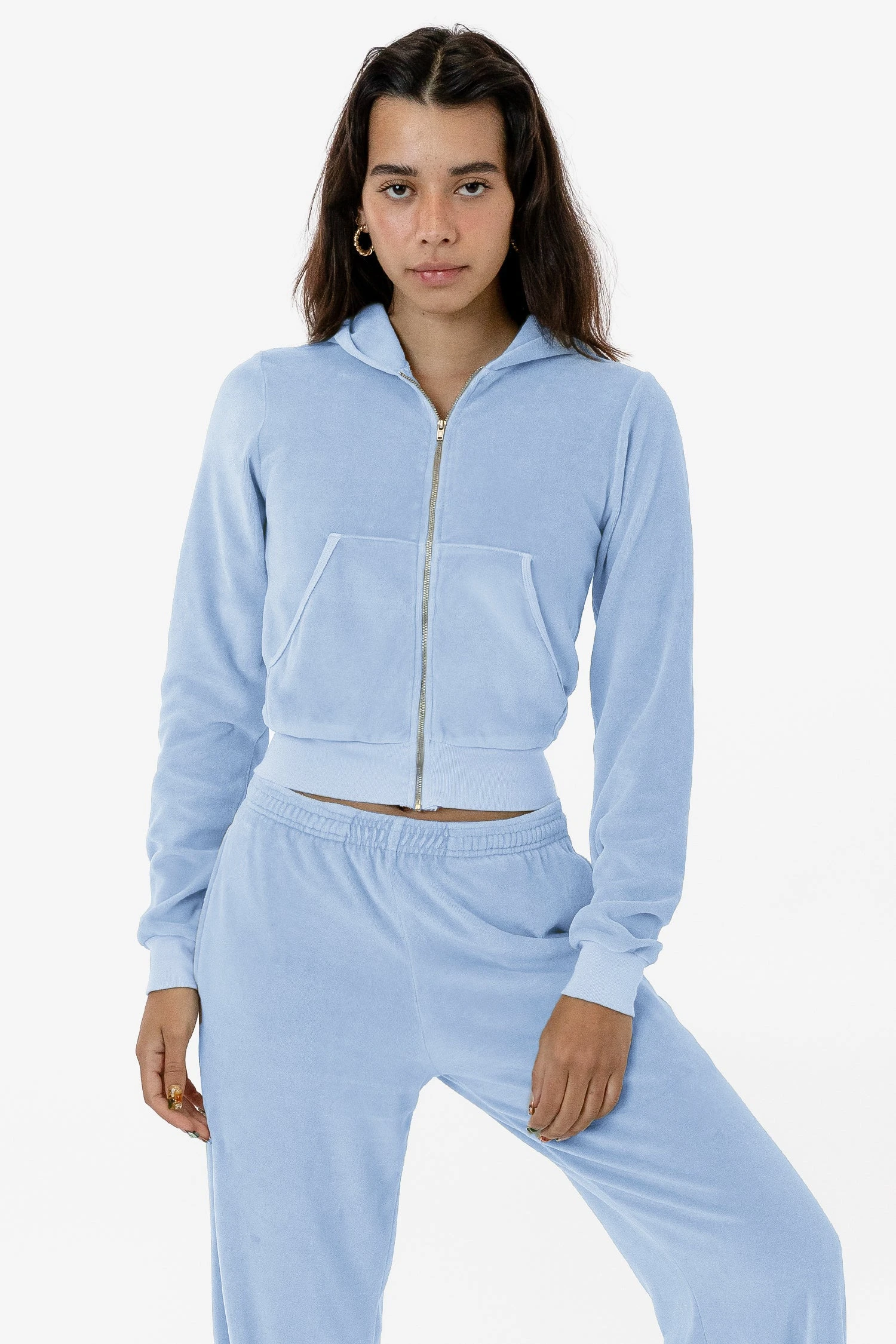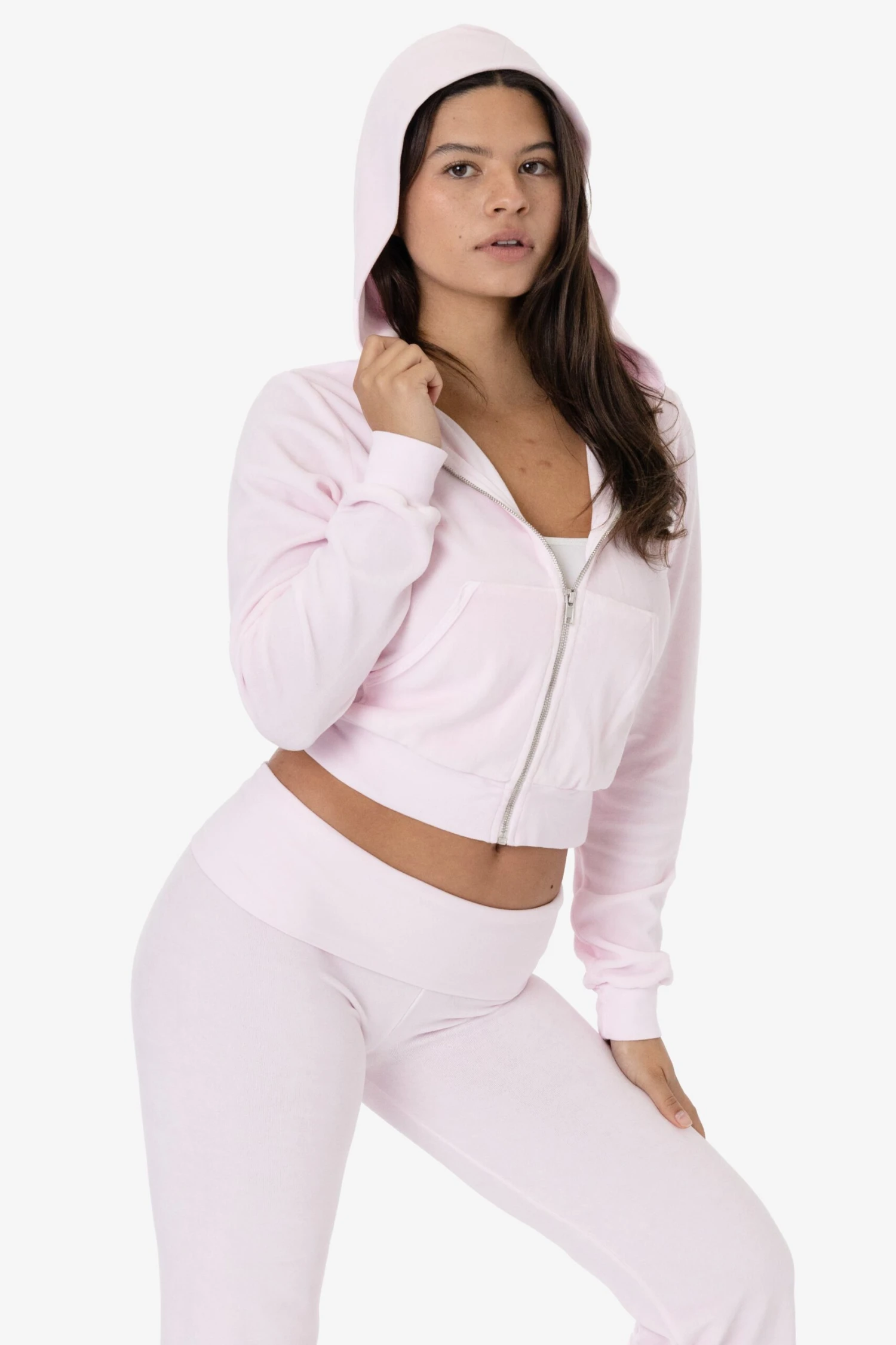 Our velour hoodie has a 2000’s inspired, slim, mid-length fit. Try pairing it with our matching velour crop tank and lounge pants or style it with our flared yoga leggings and skorts for a more laid-back look. We’ve finished this style with a thin metal zipper, 2 front pockets and an oversized hood. This garment is designed to emphasize your frame and define your waist, but can also be sized up for a roomier fit.